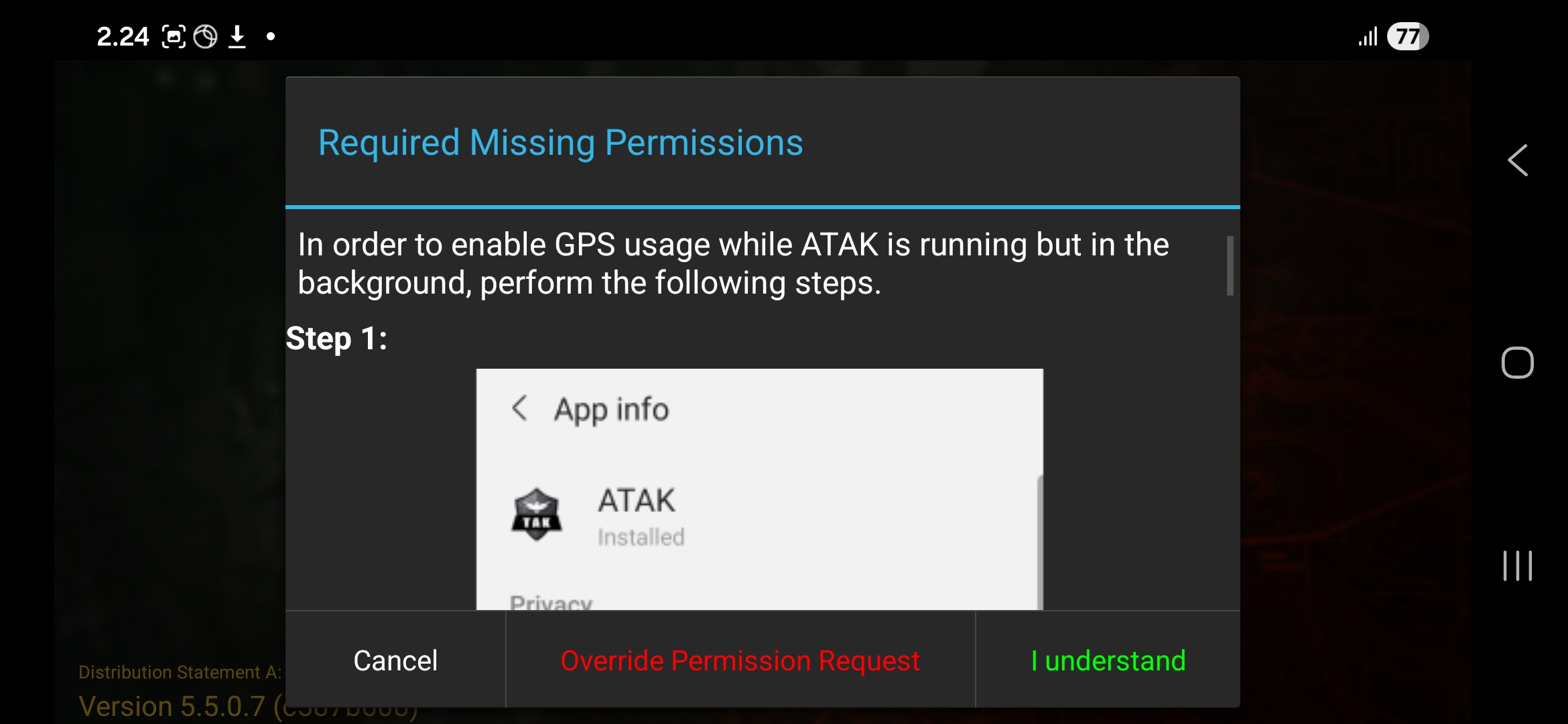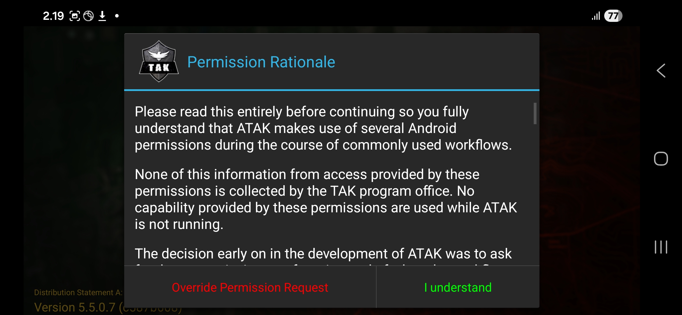 After installation and initialization of ATAK continue to ATAK Already Installed