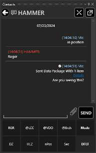 Text-based Geochat messages may be sent to active network users by using the Contacts Tool. Select the Contacts icon to reveal the contact list.