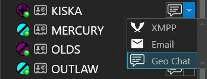 There are additional options available when communicating with an individual, depending on how the sending and receiving devices have been configured. Selecting the drop-down beside the Chat icon will reveal these additional communication methods. Supported options are VoIP (SIP), GeoChat, XMPP (TAK Chat Plug-in) messaging or e-mail.