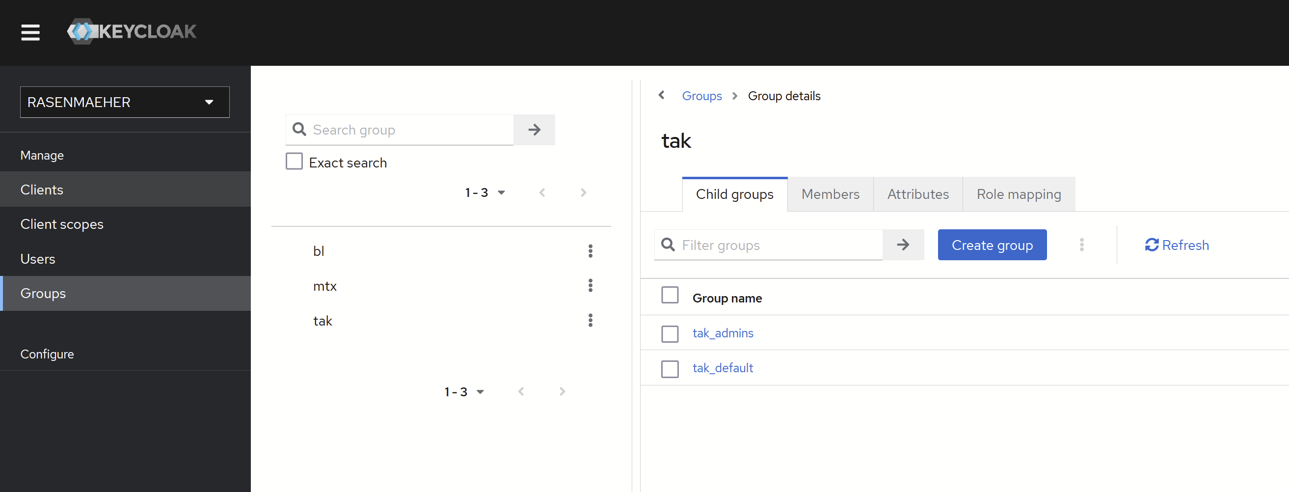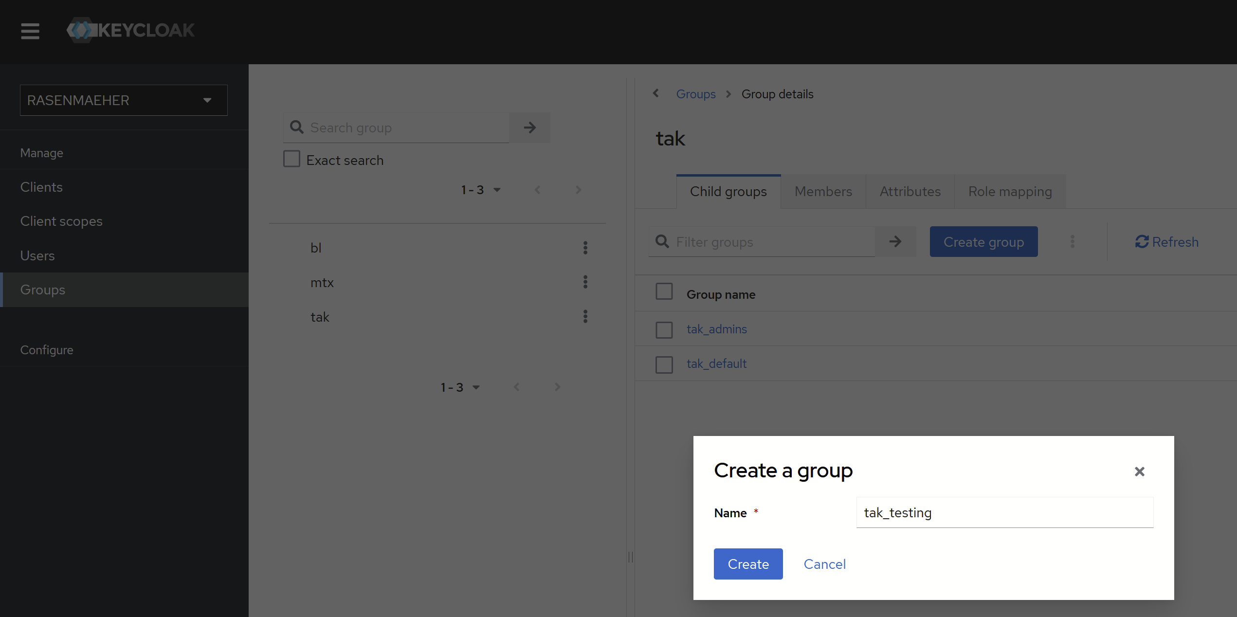 - Create a group in the Child groups page of tak Group