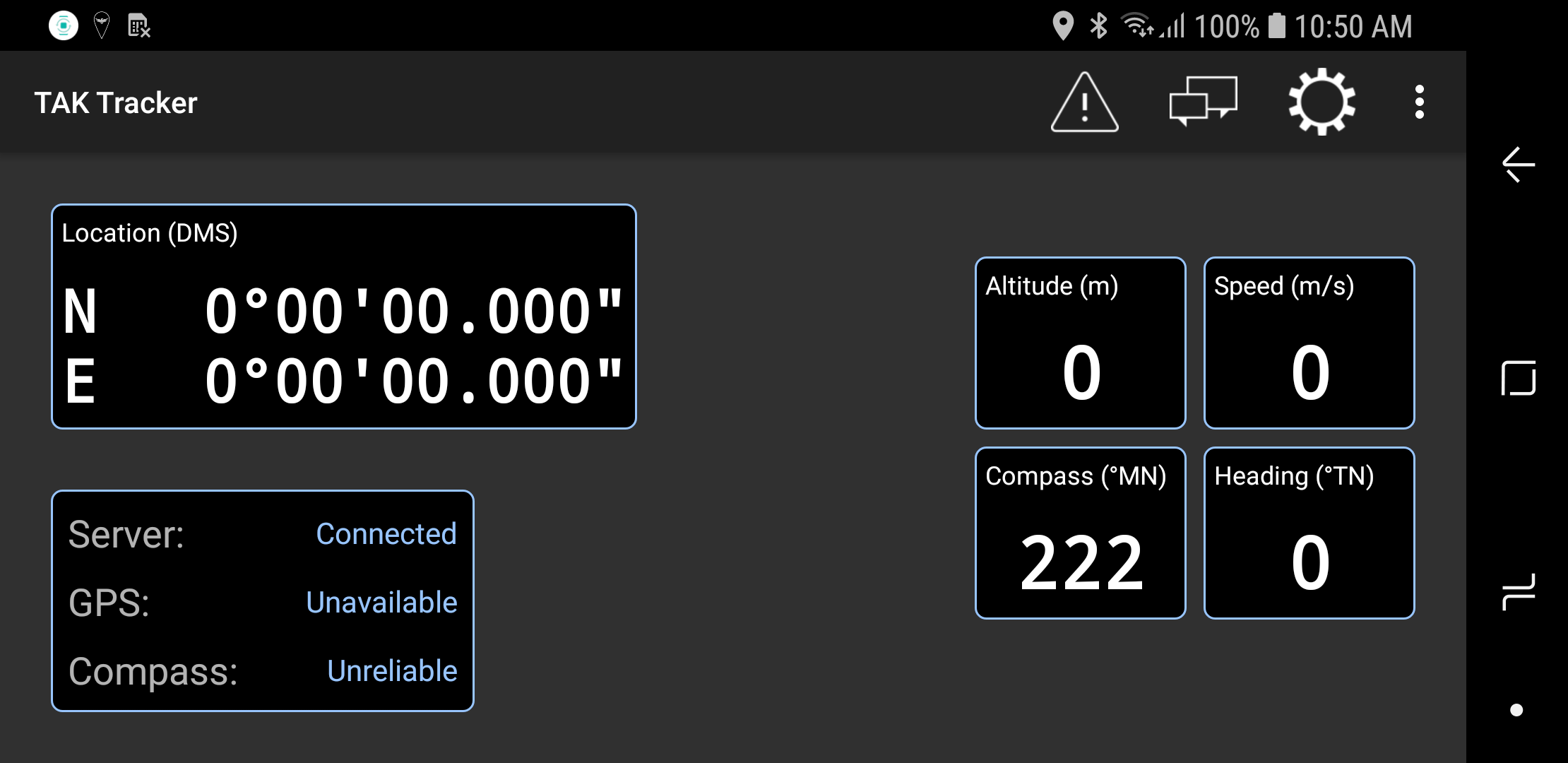 TAK Tracker is a standalone plug-in designed to keep track of users in a TAK environment who do not have ATAK installed. ATAK/WinTAK users enrolled on the same server will see the TAK Tracker user markers on their map interfaces. Selecting a user marker will show that device's speed, heading, altitude and location data.